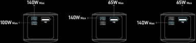 Trots sin kompakta storlek har den en otrolig kapacitet på 27650 mAh. Till exempel kan den ladda en 13-tums MacBook Air (M2) 1,28 gånger eller en iPhone 14 cirka 4,67 gånger. Dessutom uppfyller den TSA (<100> Wh) krav, så att du kan ta den med dig på planet i ditt handbagage. Du kan ladda reservströmkällan blixtsnabbt med två USB-C-portar (170 W) på bara 37 minuter. Genom att använda en USB-C-port för laddning kan du även då ladda den med upp till 140 W effekt, full laddning på cirka 45 minuter. Det går även att ladda Prime 250W med en separat inköpt ladddocka, som enheten fästs magnetiskt på. Laddningseffekten i dockan är 100 W, vilket laddar batteriet helt på drygt en timme.