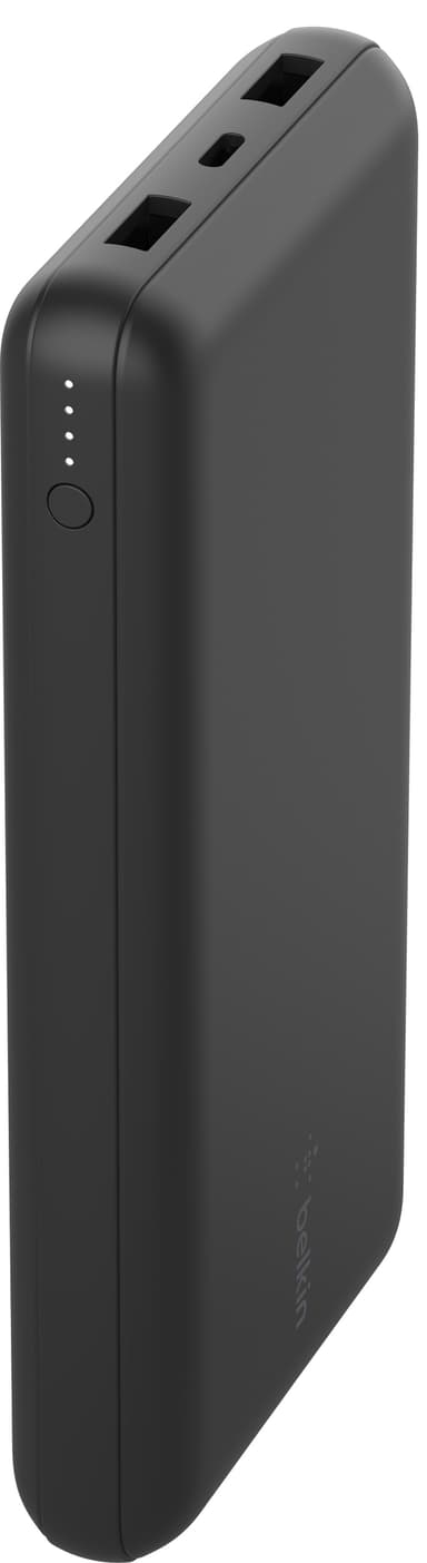 En kompakt och stilren Belkin BoostCharge 20K powerbank är redo att ladda upp till 3 enheter samtidigt med dess två USB-A-portar och en USB-C-port. Den stora 20,000 mAh-kapaciteten och upp till 15W utgångseffekt ger en mångsidig och snabb laddning.Läs mer om produkten