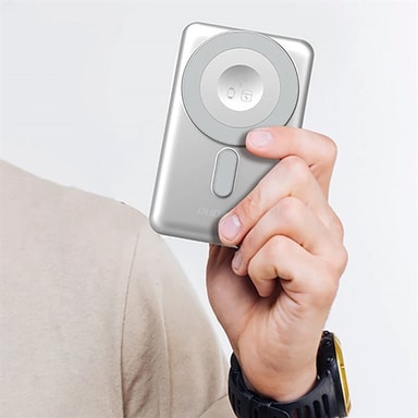 Dudao Powerbank 10000mAh PD 20W med MagSafe, stativ och inbyggda USB-kablar - SilverLäs mer om produkten