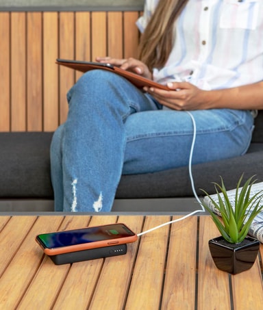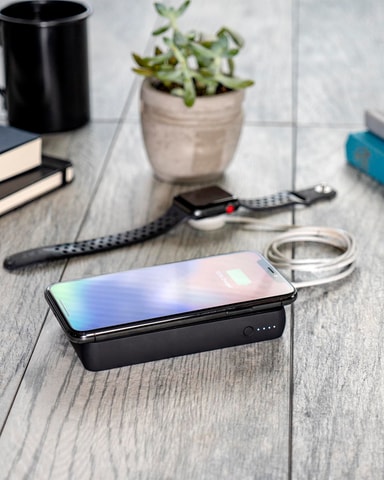 Ladda din smartphone eller surfplatta med Mophie 6040 mAh trådlösa laddningsstation. Du kan ladda två enheter samtidigt via en USB-A port och den har en kapacitet på 6040 mAh.Läs mer om produkten