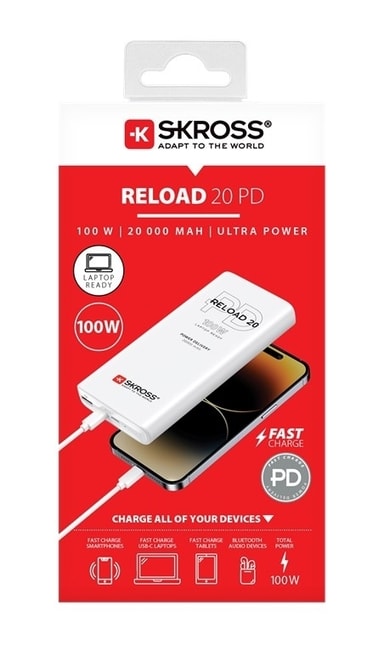 SKROSS Powerbank Reload 20 PD 100 W praktiskt extrabatteri med Power Delivery och Quick Charge för snabbladdning