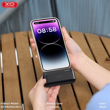 XO Mini Powerbank 20W 5000 mAh med USB-C-kontakt - SvartLäs mer om produkten