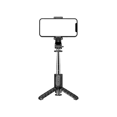 Upplev enastående flexibilitet och bekvämlighet med denna smarta selfiestick som kombinerar en tripod-funktion och trådlös fjärrkontroll. Idealisk för dig som vill ta imponerande bilder och videor enkelt.