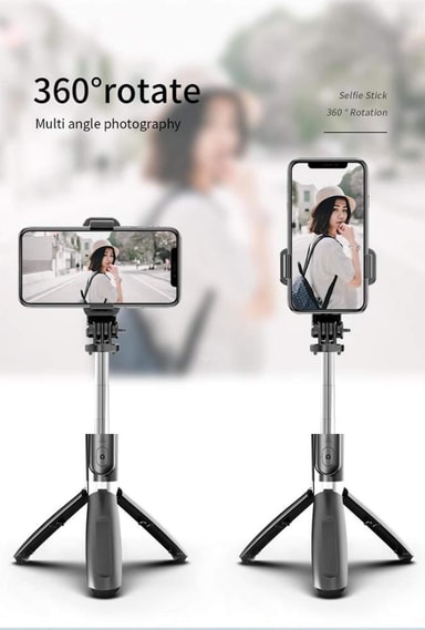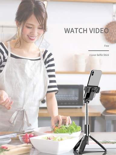 Mobilstativ och selfiepinne i ett: Selfiestick och tripod med trådlös fjärrkontroll (Bluetooth) för att göra det enkelt och bekvämt att ta selfies eller gruppfoton. Du kan också använda selfiepinnen som ett stativ till mobilen genom att vika ut benen.