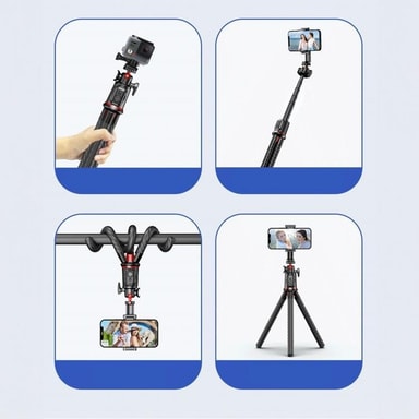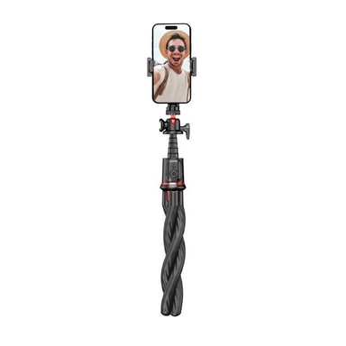 Stickan har ett teleskopiskt rör som gör att den kan förlängas till en imponerande längd. Detta gör att du enkelt kan fånga en vidvinkel eller fotografera en grupp vänner. Flexibla stativben möjliggör enkel justering till olika ytor, vilket ger ett stabilt stöd för din enhet.