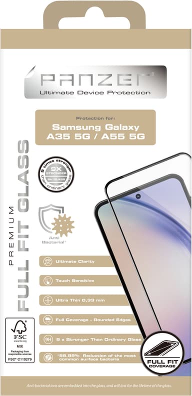 Panzer Full-Fit Samsung Galaxy A55/35 skärmskydd tillverkat av tunt 0.33 m glas och med splitterskyddsfilm säkerställer ett bra skydd av din skärm i alla situationer.Läs mer om produkten