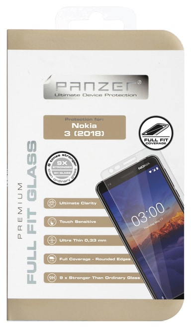 Skydda skärmen på din Nokia 3.1 smartphone med Panzer Full-Fit skärmskydd. Skärmskyddet är gjort av elastiskt härdat glas som ger ett extra skydd mot repor, och har rundade kanter som passar din Nokia 3.1-skärm perfekt.Läs mer om produkten