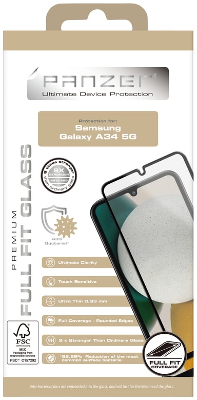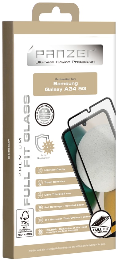 Se till att din Samsung Galaxy A34 förvaras säkert med Panzer Full-Fit skärmskydd. Detta skärmskydd i silikatglas kommer att täcka displayen på din telefon från kant till kant.Läs mer om produkten