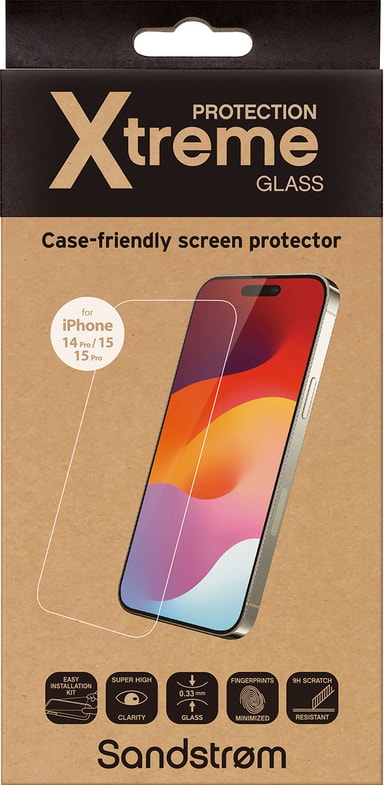 Sandstrøm iPhone 14 Pro/15/15 Pro/16 Flat Glass skärmskydd