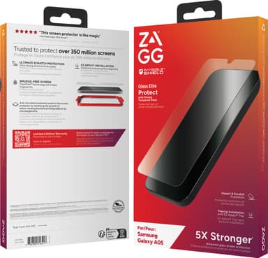 Håll telefonens skärm säker från repor och splittring med hjälp av Zagg Glass Elite Samsung Galaxy A05s skärmskydd för mobiltelefoner, som erbjuder en enkel applicering, anti-fingeravtryck och antimikrobiell beläggning och förstärkta kanter.Läs mer om produkten