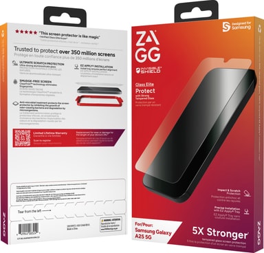 Håll telefonens skärm säker från repor och splittring med hjälp av Zagg Glass Elite Samsung Galaxy A25 skärmskydd, som erbjuder en enkel applicering, anti-fingeravtryck och antimikrobiell beläggning och förstärkta kanter.Läs mer om produkten
