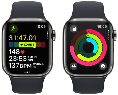 Apple Watch Series 9 smartwatch har högre processorkraft än tidigare, vilket gör den ännu bättre. Dess breda utbud av funktioner inkluderar upptäckt av bilolyckor, beröringsfri Double Tap-kontroll och avancerad hälso- och träningsregistrering.Läs mer om produkten