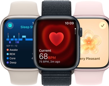 Apple Watch Series 9 smartwatch har högre processorkraft än tidigare, vilket gör den ännu bättre. Dess breda utbud av funktioner inkluderar upptäckt av bilolyckor, beröringsfri Double Tap-kontroll och avancerad hälso- och träningsregistrering.Läs mer om produkten