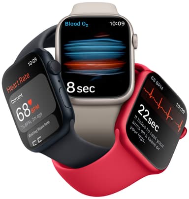 Apple Watch Series 8 45 mm smartwatch har avancerade hälso- och träningsfunktioner, som EKG, pulssensor, stress- och sömnmonitor och en uppsjö av träningslägen.Läs mer om produkten