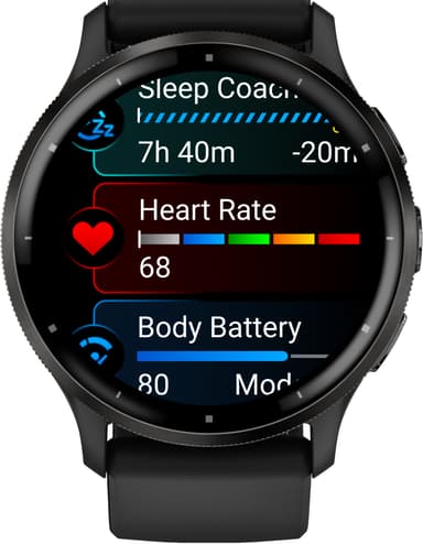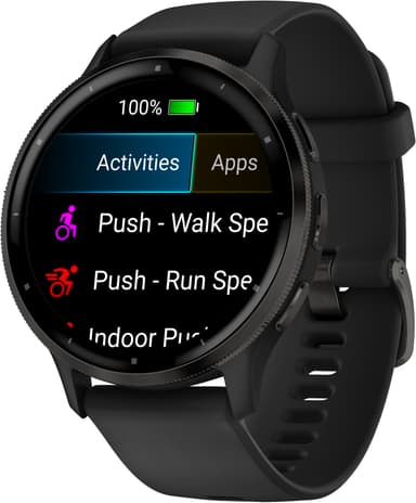 Garmin Venu 3 smartwatch har en ljusstark AMOLED-skärm, puls- och blodsyreövervakning samt fitnessfunktioner inklusive rullstolslägen. Se aviseringar, SMS, och styr musiken på handleden via Bluetooth-anslutning.Läs mer om produkten