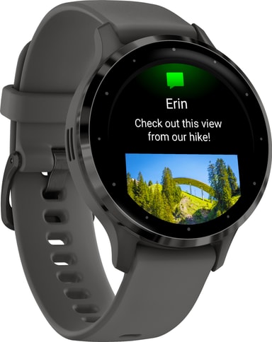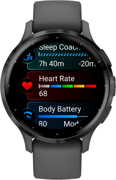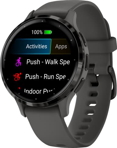 Garmin Venu 3S smartwatch har en ljusstark AMOLED-skärm, puls- och blodsyreövervakning samt fitnessfunktioner inklusive rullstolslägen. Se aviseringar, SMS, och styr musiken på handleden via Bluetooth-anslutning.Läs mer om produkten