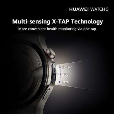 Huawei Watch 5 har 3-i-1 X-TAP hälsoövervakning med EKG, SpO2 och tryckmätning i en sensor. Byggd i premiummaterial erbjuder den upp till 11 dagars batteritid. Snygg, hållbar och kompatibel med iOS/Android – ditt välbefinnande, förenklat.Läs mer om produkten