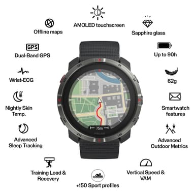 Polar Grit X2 sportklocka kombinerar en robust design med en 1,28-tums AMOLED-skärm i safirglas, färdiga träningsplaner och Polar Elixir Biosensing. Den har också 7 dagars batteritid, Bluetooth och dubbelfrekvens-GPS med kartor i fullfärg.Läs mer om produkten
