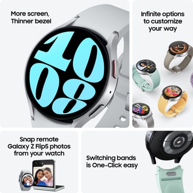 Var aktiv, träna och ha glädje av hälsofunktionerna hos denna Samsung Galaxy Watch6 40mm som har en detaljerad löpanalys, puls- och blodtrycksmätning och sömnmätningsfunktioner, vilket hjälper dig att leva ett hälsosammare liv.Läs mer om produkten