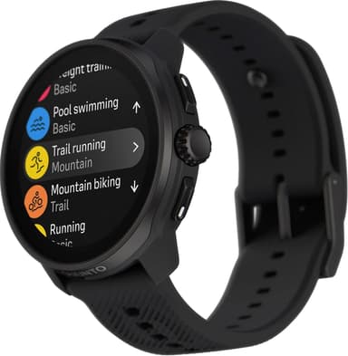Suunto Race S smartklocka kombinerar en högupplöst AMOLED-skärm, HRV-återhämtningsstatistik och 95+ sportlägen i en kompakt design, med GPS-navigering med offlinekartor och upp till 26 dagars batteritid.Läs mer om produkten