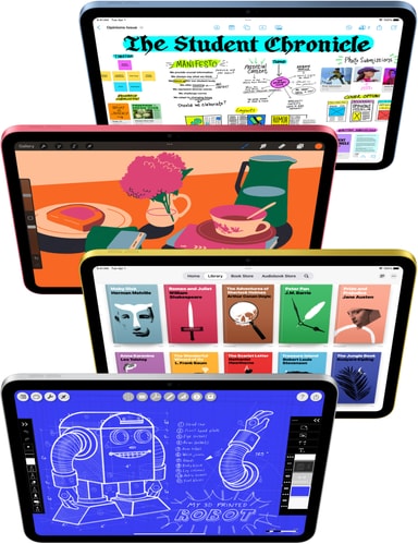 iPad 11" (11:e generationen) är utrustad med ett kraftfullt A16 Bionic-chip för att ge dig underhållning vart du än går. Se filmer på den vackra 11-tums Liquin Retina-skärmen med stöd för Apple Pencil och spela in hisnande 4K-video.Läs mer om produkten