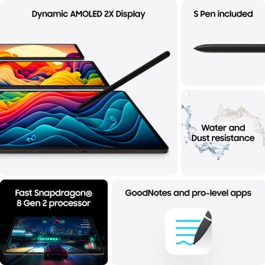 Oavsett om du väljer Galaxy Tab S9, Galaxy Tab S9+ eller Galaxy Tab S9 Ultra, är alla redo att ge liv till din kreativa vision. Alla tre har en Dynamic AMOLED 2X-skärm, som levererar fantastiska färger och bilder. Dessutom är de skonsamma för ögonen med minskat blått ljus.