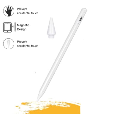 Kompatibel med iPad: Skärmpennan är lämplig för iPad 6/7/8/9/10/Mini 5 (magnetisk laddning stöds inte)/Mini 6 - 8,3"", Air 3 (magnetisk laddning stöds inte)/Air 4 - 10,9"", Air 5 - 10,9"", Pro 11"", Pro 2 - 11"", Pro 3 - 12.9"", Pro 3 - 11"", Pro 4 - 12.9"", Pro 4 - 11"", Pro 5 - 12.9"" och Pro 6 - 12.9"".
