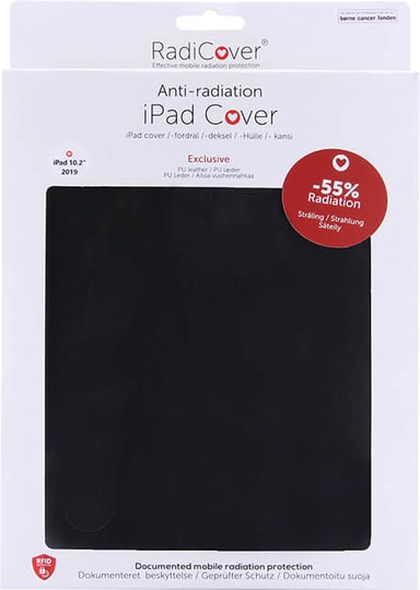 Radicover iPad 10.2 " foliofodral i PU-läder ger dig upp till 55% skydd mot mobil strålning och fast stängning med magnetlås. Stäng fodralet för att stänga av skärmen och spara batteritid.Läs mer om produkten