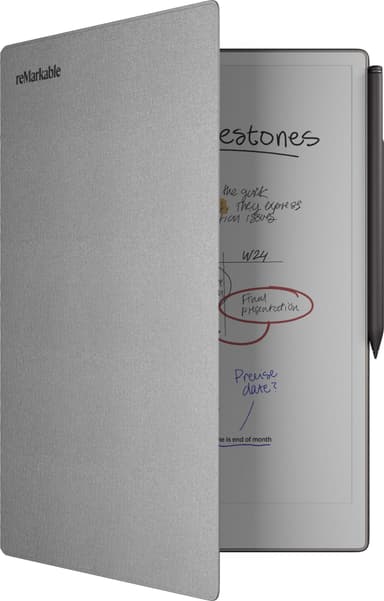 reMarkable BookFolio Pro håller din reMarkable Pro-enhet säker och snygg. Det förstklassiga polymervävskyddet förbättrar din stil och fäster magnetiskt på din enhet samtidigt som det lämnar utrymme på sidan för din reMarkable Marker.Läs mer om produkten