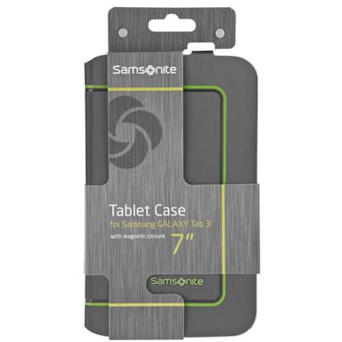 Läckert skyddande fodral med material av hög kvalitet perfekt passform för Samsung Galaxt Tab 3. För skärmstorlek 7"". Av PU i borstad aluminium med färgaccent och Samsonite logotyp.