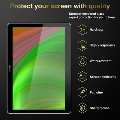 Härdat glas skyddar skärmen på din surfplatta. Den är tillverkad av specialbehandlat glas för att skydda skärmen optimalt mot repor och fall.