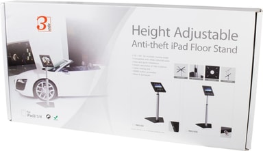 iPad-hållaren kan skruvas fast antingen liggande eller stående, kan vinklas fritt 0-90 (+/-) grader.