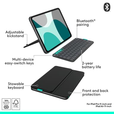 Logitech Flip Folio iPad Pro 11”/iPa1 Air 13” tangentbord för surfplatta (svart)
