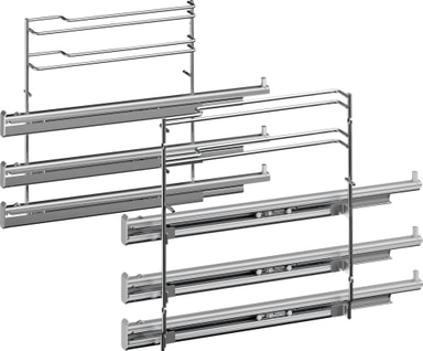Bosch teleskopskenor HEZ638370 är designade för säker och bekväm användning när du lagar mat eller bakar i din ugn. Dessa skenor har tre nivåer och kan dras ut helt utan att tippa och är lämpliga för pyrolytiska ugnar.Läs mer om produkten