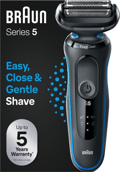 Med Braun Series 5 rakapparat 51-B1000s får du en slät rakning eller trimning utan risk för att skada dig. Den kombinerar 3 flexibla blad med våt och torr användning, AutoSense-teknologi, EasyClean och EasyClick för enkel användning av tillbehör.Läs mer om produkten