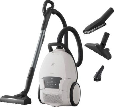 Dammsugaren levereras med praktiska tillbehör, inklusive ett 3-i-1-verktyg och en dammborste som skonsamt men noggrant rengör även de mest ömtåliga ytor.