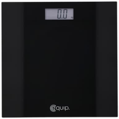 Equip personlig våg i svart glas täcker alla grundläggande behov. 30x80cm LCD-skärmen kommer visa din nuvarande vikt korrekt med en kapacitet på 180 kg. Det härdade glaset är enkelt att rengöra och Auto-på och av ger en enkel användning.Läs mer om produkten