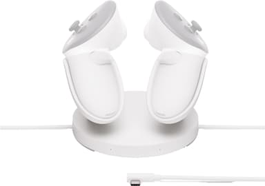 Var redo för lite VR-action var du än är tack vare Meta Quest 3/3S kompakt laddningsdocka, en 2-i-1-enhet som kan ladda dina Meta Quest Touch Pro-kontroller och Meta Quest3/3S-headset med en USB-C-anslutning.Läs mer om produkten