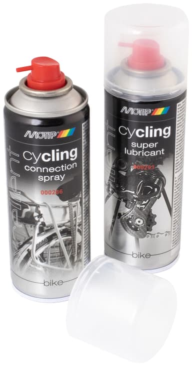 Motip kontaktspray & supersmörjmedel till elcykel 000286/000293 har allt du behöver för att ta hand om din elcykel. Kontaktsprayen hjälper till att rengöra och skydda dess elektroniska utrustning medan smörjmedlet håller de rörliga delarna rörliga.Läs mer om produkten