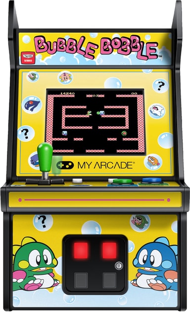 Återupplev dina barndomsminnen med My Arcade Micro Player Pro 6.75" Bubble Bobble Retro spelkonsol, som erbjuder en arkadupplevelse i ditt hem. Med en högupplöst skärm och kompakt storlek.Läs mer om produkten