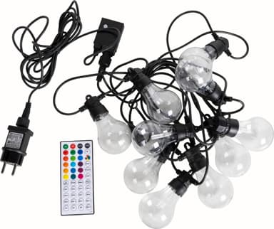 Nord Bulb 10L dekorationsbelysning på 1,5W är en 3 meter lång ljusslinga med 10 glödlampor som lyser i flera färger. Denna ljusslinga har IP44-klassificering vilket gör den lämplig för både inomhus- och utomhusbruk.Läs mer om produkten