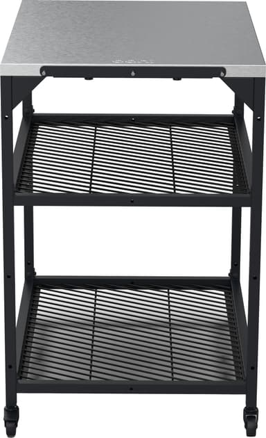 Ooni Modular pizzabord UU-P2F000 är ett hållbart utomhusställ för förberedelse och servering av pizza. Det är tillverkat av pulverlackerat kolstål och har två hyllor och krokar för förvaring av tillbehör som pizzapaddlar och serveringsskedar.Läs mer om produkten