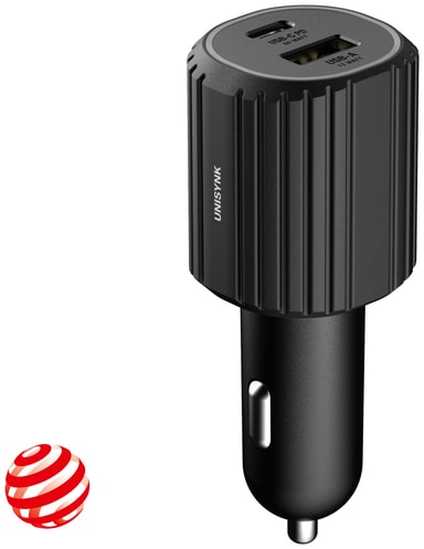 Ladda två enheter samtidigt med en Unisynk USB-C/USB-A billaddare som har en effekt på 72 Watt och en färgkodad LED-ring som ger information om bilbatterinivån. Denna robusta laddare tål både iskalla vintrar och värmeböljor under sommaren.Läs mer om produkten