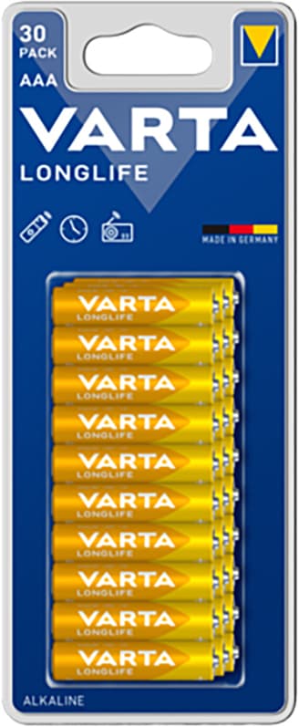 Håll dina enheter igång med Varta Longlife AAA-batteri. Förpackningen innehåller 30 batterier.Läs mer om produkten