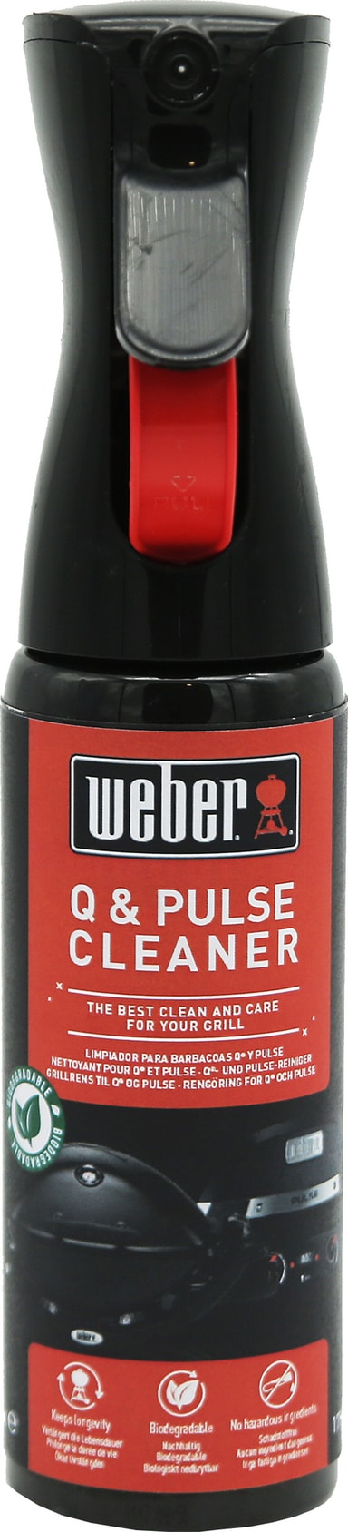 Weber rengöringsspray för Q och Pulse grillar 17874 tar effektivt bort fett och inbrända matrester på din Q eller Pulse-grill. Rengöringsmedlet innehåller ej giftiga tillsatser och kan sprayas i alla vinklar.Läs mer om produkten