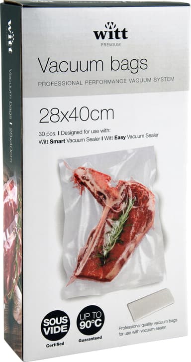 Håll maten färsk längre med Witt Premium vakuumförseglingspåsar 62650003, lämpliga för förvaring och perfekta för sous vide-matlagning.Läs mer om produkten