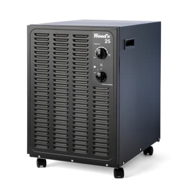Woods avfuktare SW25B har en 11,4-liters vattentank och en avfuktningskapacitet på 13,5 liter per dag. Den är lämplig för små till medelstora slutna utrymmen på upp till 90 m², såsom garage, källare och vind.Läs mer om produkten