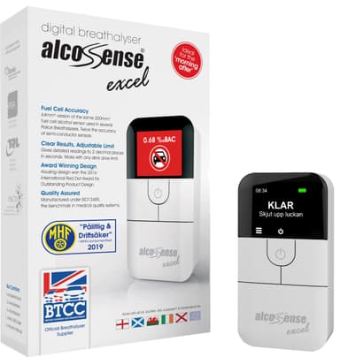 Var säker med AlcoSense Excel alkomätare 242600, en pålitlig och korrekt enhet för avläsning av alkoholnivåer, perfekt för utlandsresor. Den har en TFT-skärm i full färg och en 64mm2 bränslecellssensor för tydliga och korrekta avläsningar.Läs mer om produkten