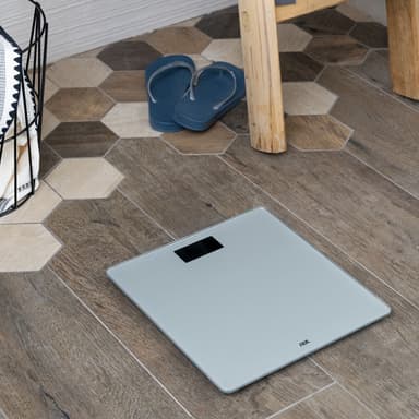 Enfärgad glasvåg med en maximal belastning på 180 kg. Step-on-tekniken (bara att ställa sig på den och börja väga). Överbelastningsindikator.Batterinivåindikator. Automatisk avstängning. CR2032 litiumbatteri ingår. Viktenheter: kg, lb och st.Läs mer om produkten
