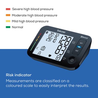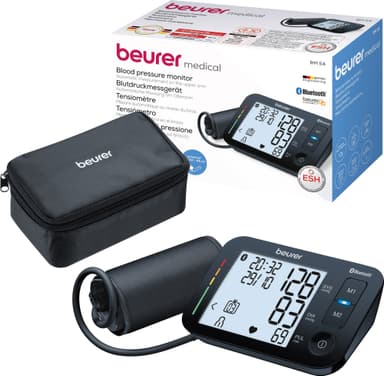 Beurer blodtrycksmätare BM 54 låter dig mäta blodtryck och puls hemma och hålla bättre koll på din hälsa med sina 2 minnesplatser och Beurer Health Manager-appen. För överarmar med omkrets mellan 22 och 44 cm.Läs mer om produkten